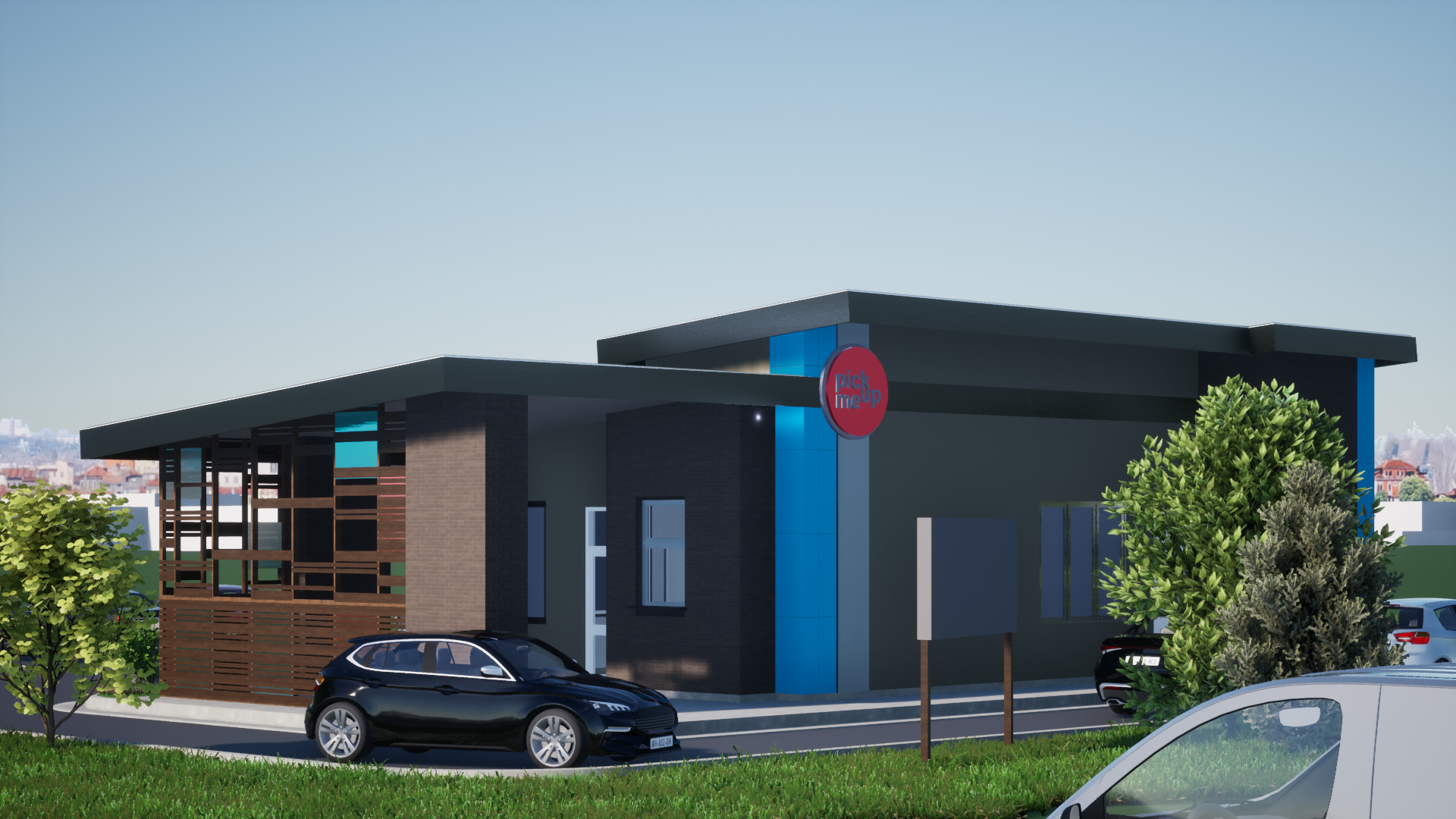 Pick Me Up Drinks is a soda and small food restaurant specifically crafted for a site in Idaho Falls. The project not only aims to deliver a functional kitchen within a compact space but also serves as a blueprint for future site-adapted projects. While the primary focus is on accommodating vehicle traffic with a convenient drive-thru, pedestrian access and utility considerations are meticulously integrated. Additionally, the outdoor seating areas are designed to provide guests with protection from wind and weather.